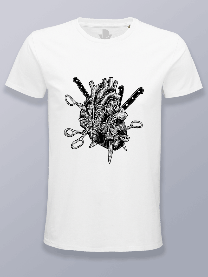 Camiseta para hombre unisex con diseño de ilustraciones en blanco y negro.