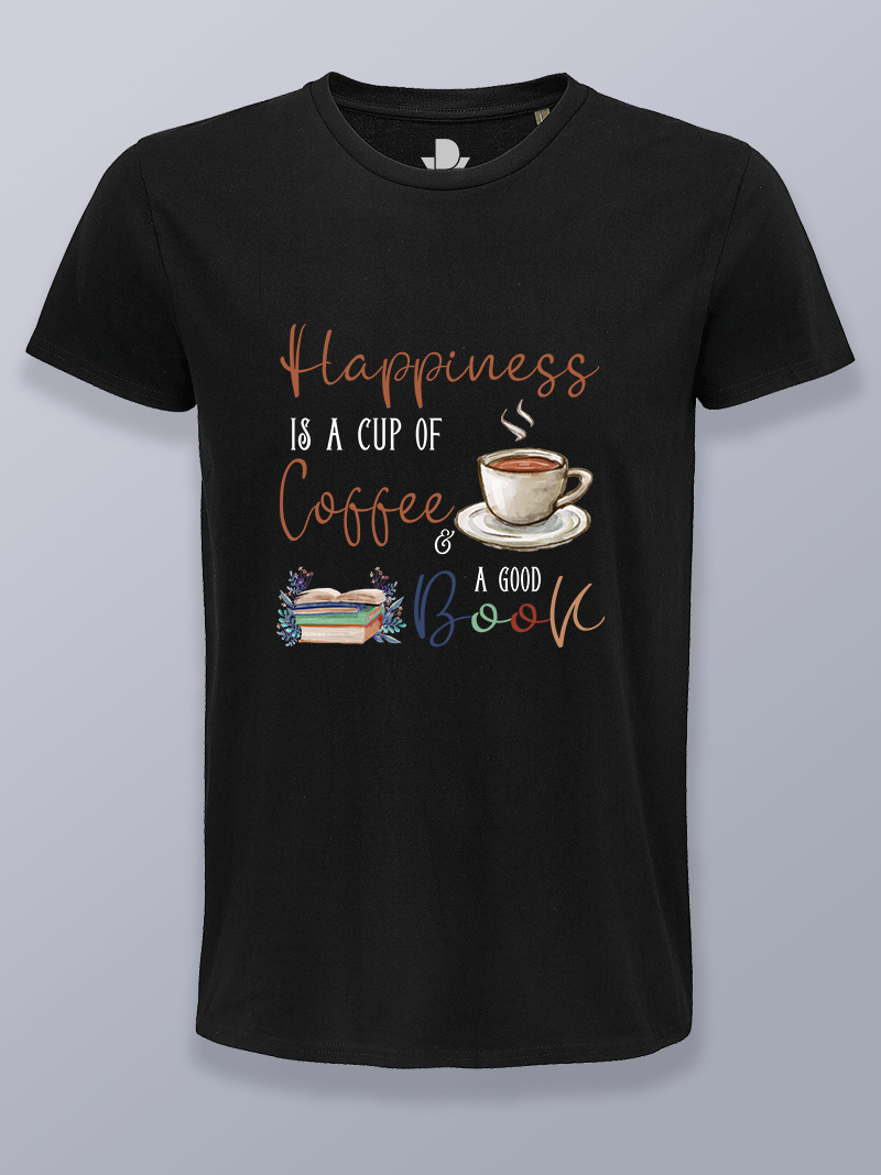 Camiseta hombre felicidad, café y un libro