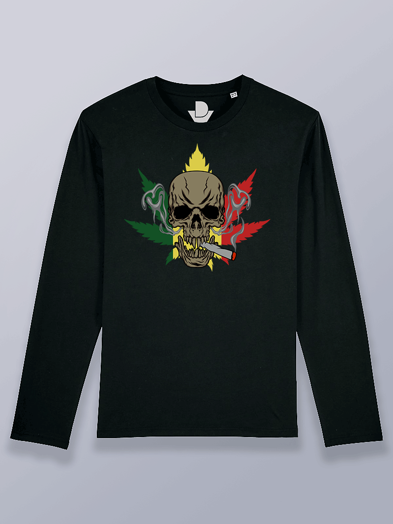 Camiseta hombre manga larga Calavera Cannabis