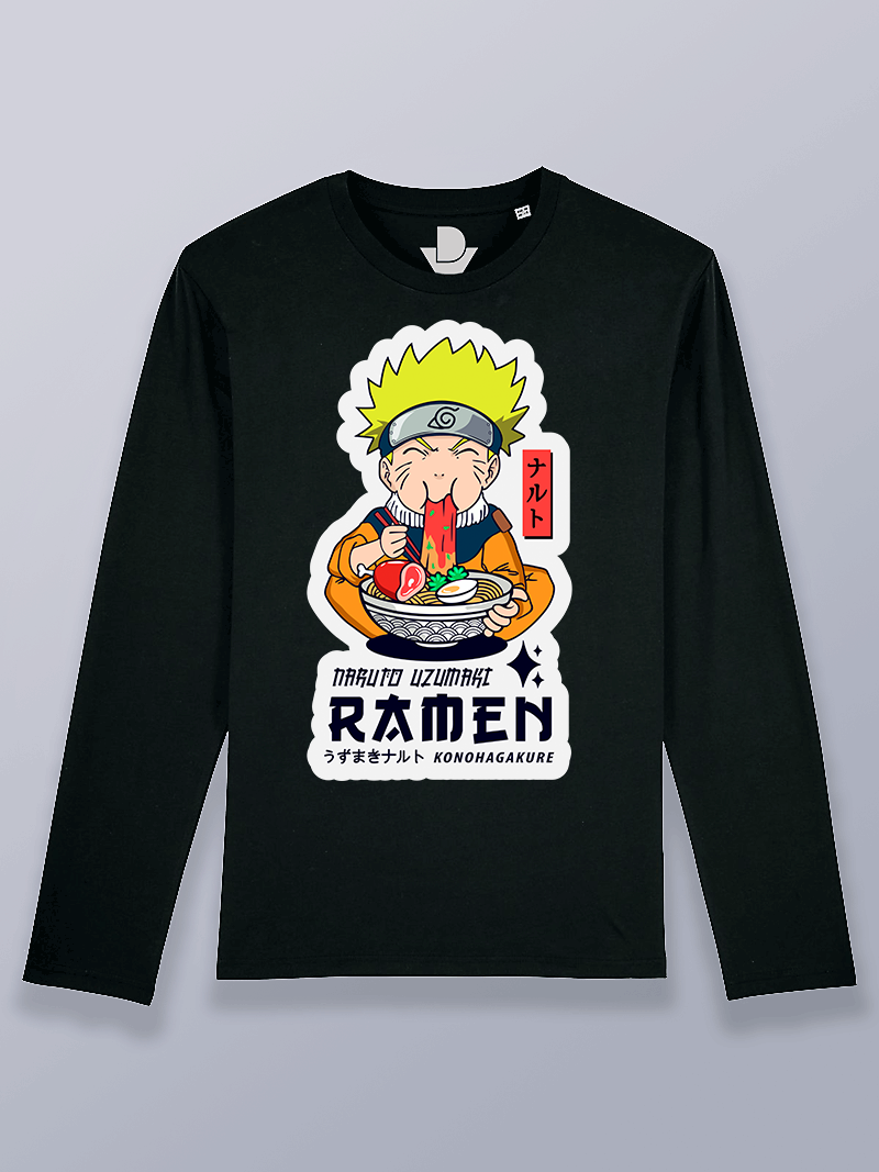 Camiseta hombre manga larga Naruto ramen aldea oculta.