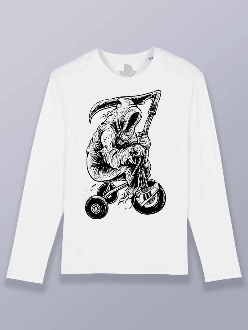 Camiseta de manga larga para hombre con diseño de ilustraciones en blanco y negro.