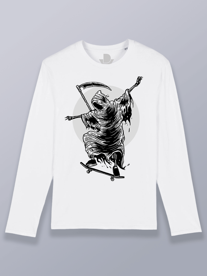 Camiseta de manga larga para hombre con diseño de ilustraciones en blanco y negro.