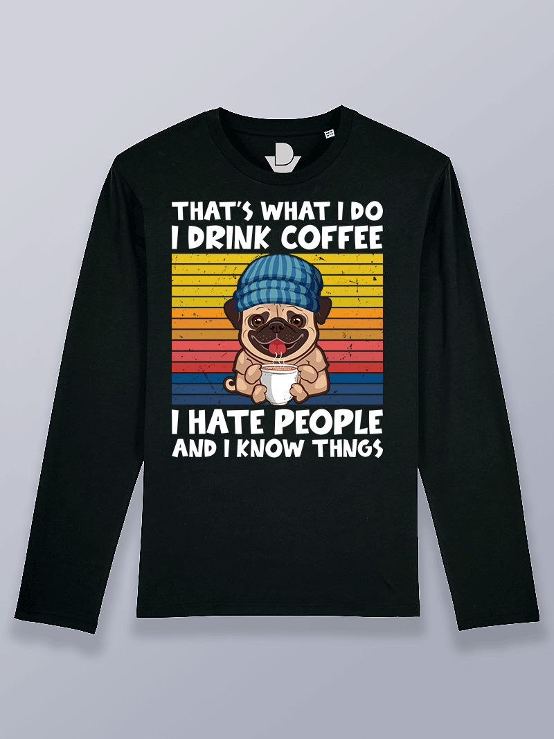 Camiseta hombre manga larga perro bebiendo café