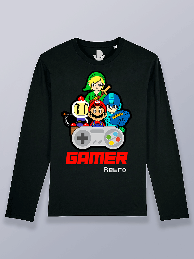 Camiseta de manga larga para hombre con diseño gamer retro.