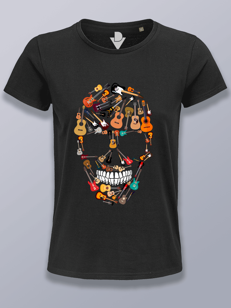 Camiseta mujer calavera de guitarras