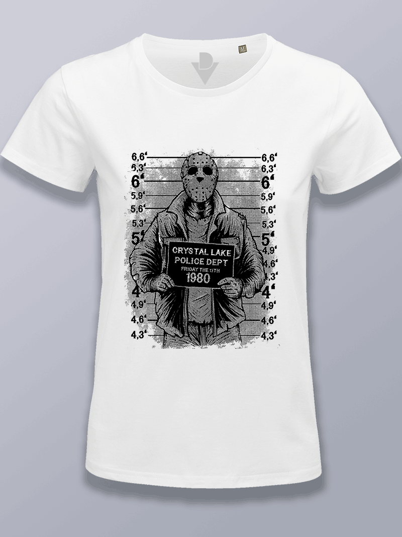Camiseta mujer jason Voorhees viernes foto policial