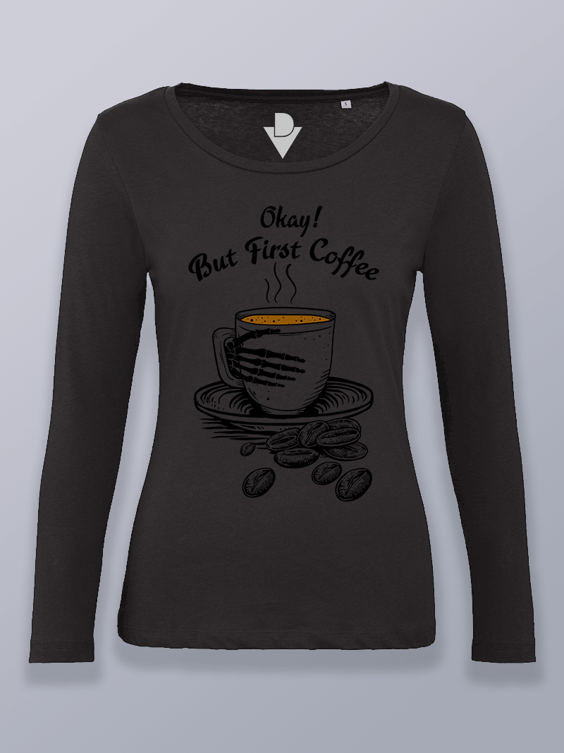 Camiseta de manga larga para mujer con diseños de café y lectura.