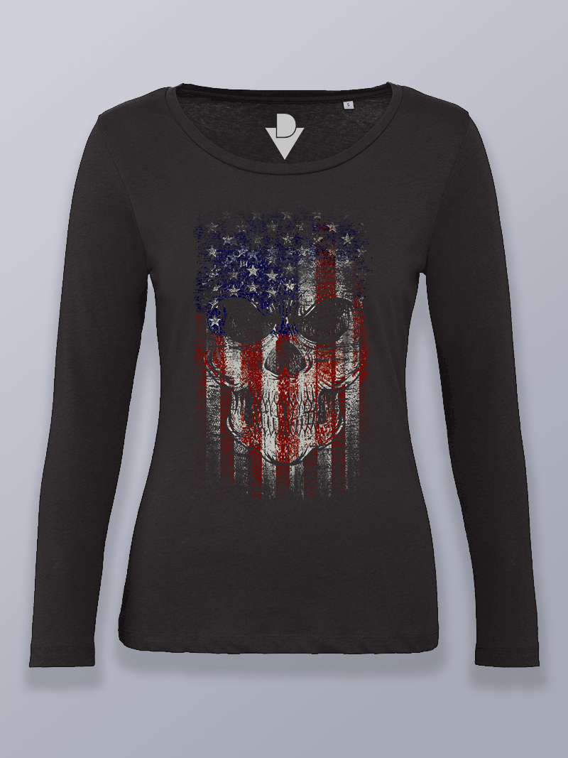 Camiseta de manga larga para mujer con diseño de calaveras.