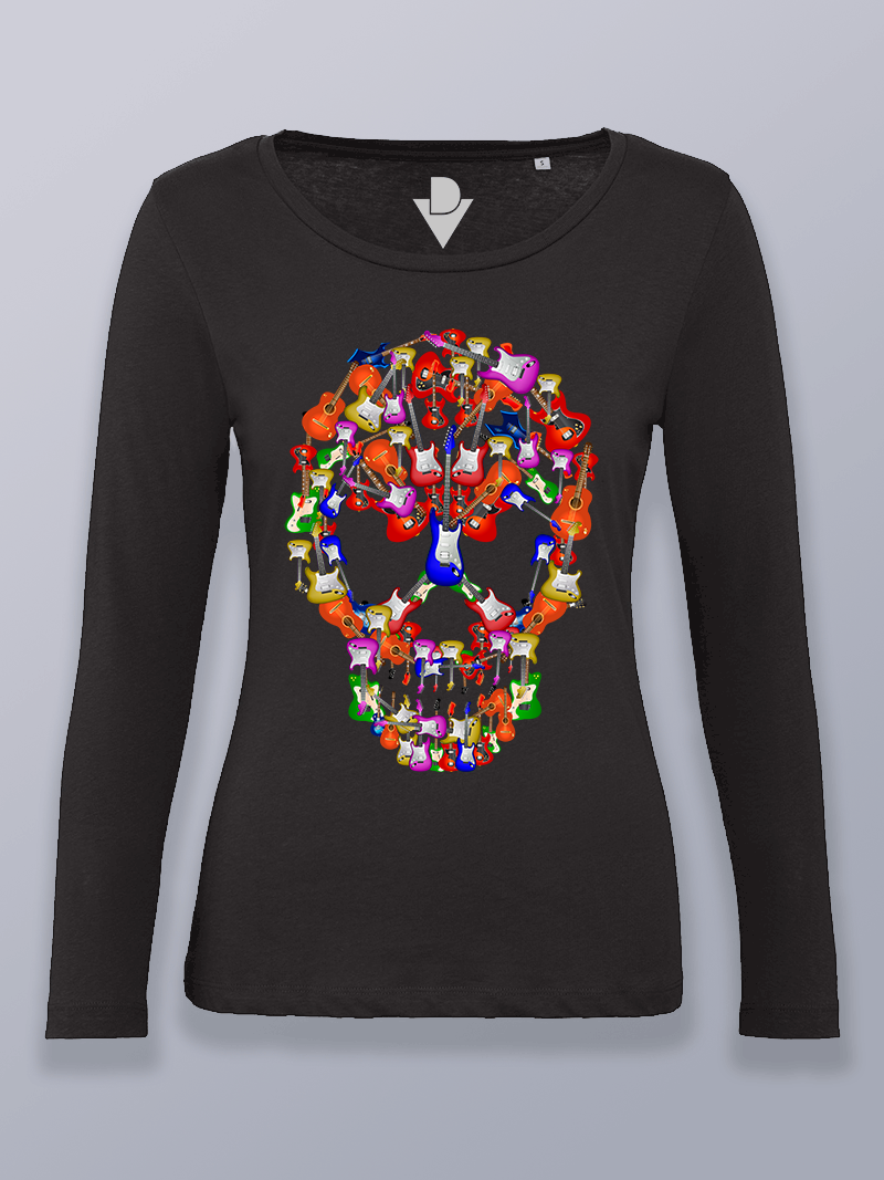 Camiseta mujer manga larga calavera de guitarras eléctricas