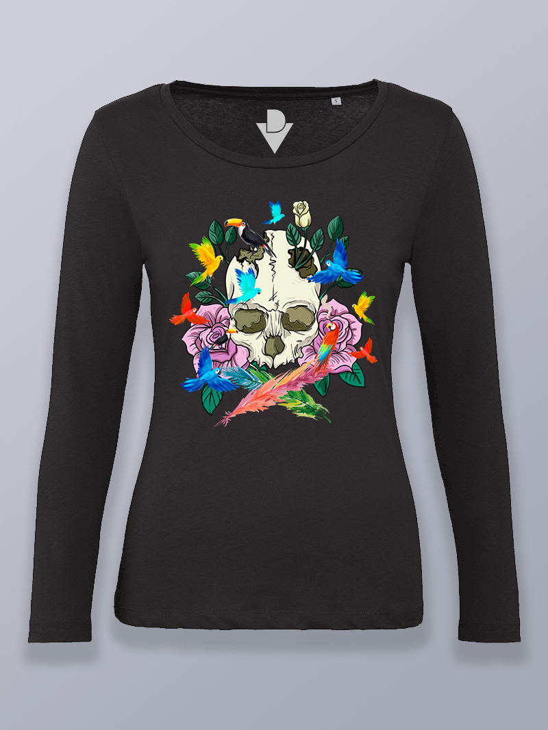 Camiseta mujer manga larga calavera de la naturaleza