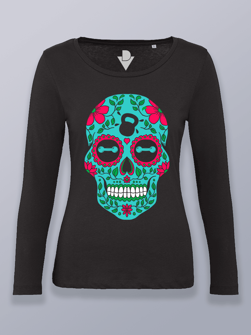 Camiseta de manga larga para mujer con diseño de calaveras.