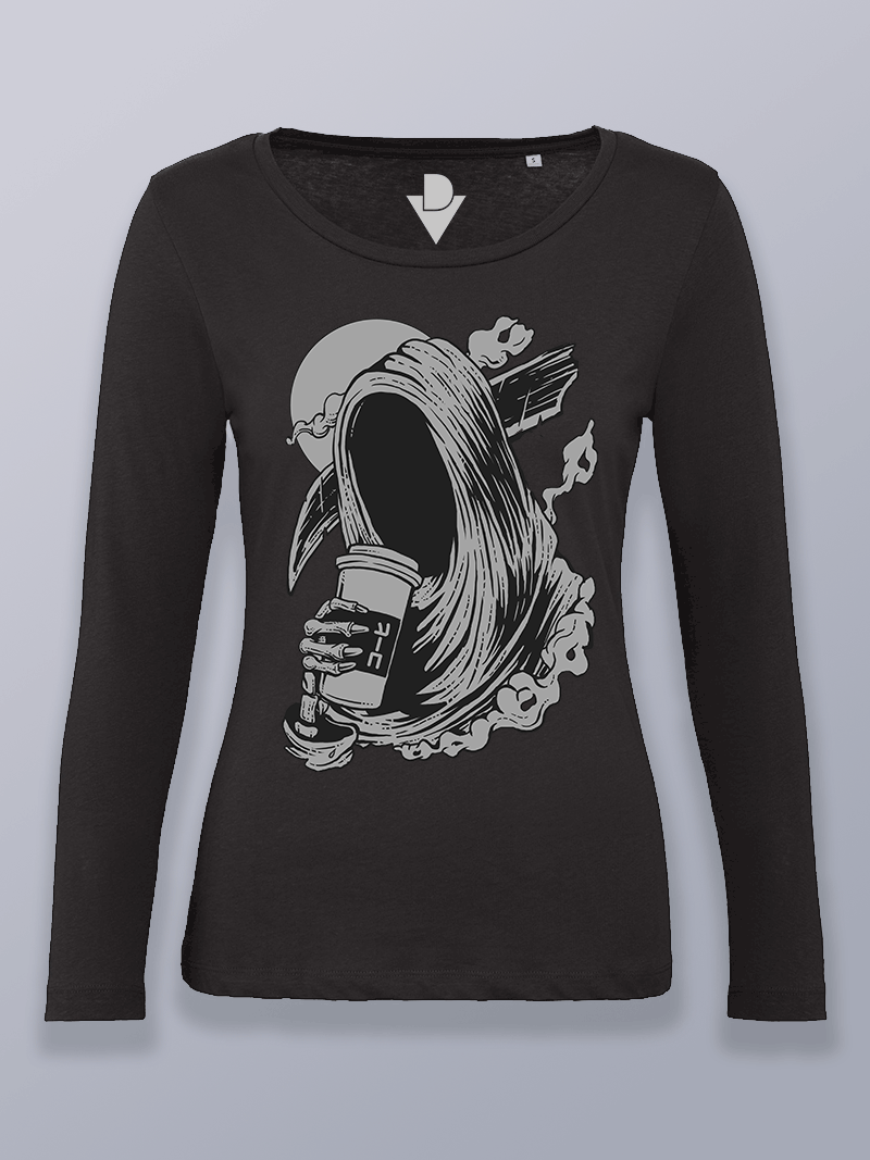 Camiseta de manga larga para mujer con diseño de ilustraciones en blanco y negro.