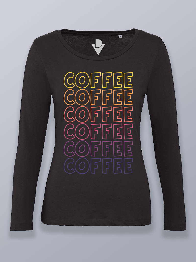 Camiseta de manga larga para mujer con diseños de café y lectura.