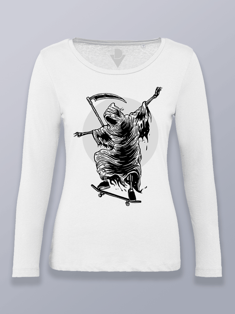 Camiseta de manga larga para mujer con diseño de ilustraciones en blanco y negro.