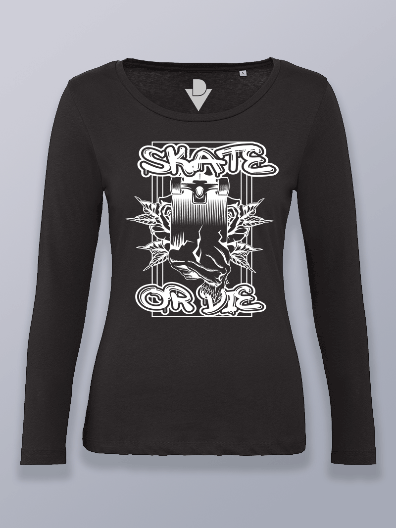 Camiseta mujer manga larga skate o muere diseño 2 (color blanco)