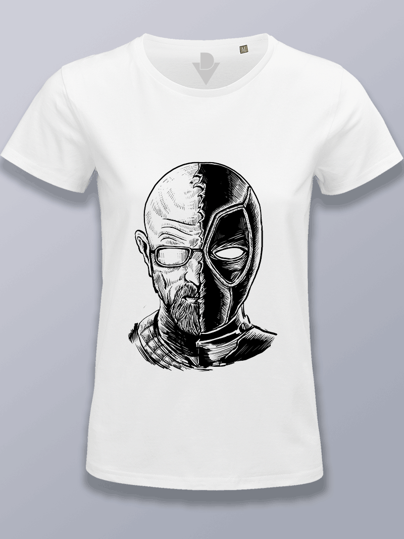 Camiseta para mujer con diseño de ilustraciones en blanco y negro.