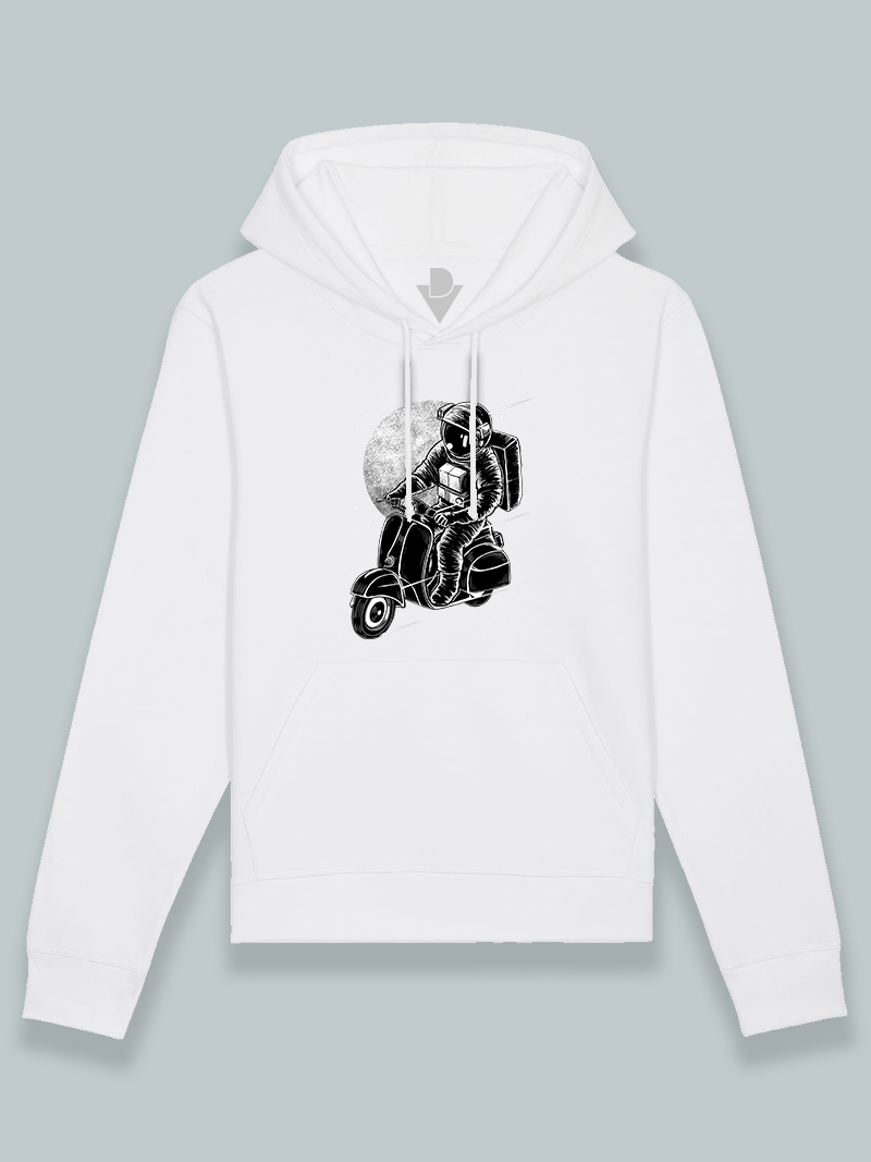 Sudadera con capucha astronauta en scooter blanco y negro