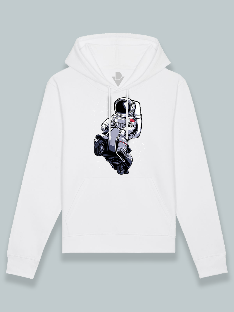 Canalé 1×1 en puños y bajo, puntada plana en todas las costuras, bolsillo canguro con sobrecostura.