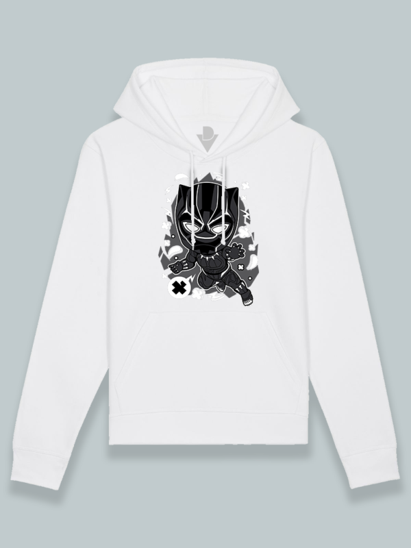Bolsillo canguro, manga pegada, capucha forrada con punto de jersey, cordón redondo del mismo tono. Ojales de la capucha cosidos, Bies interior de espiga en el cuello, media luna interior en tejido principal.