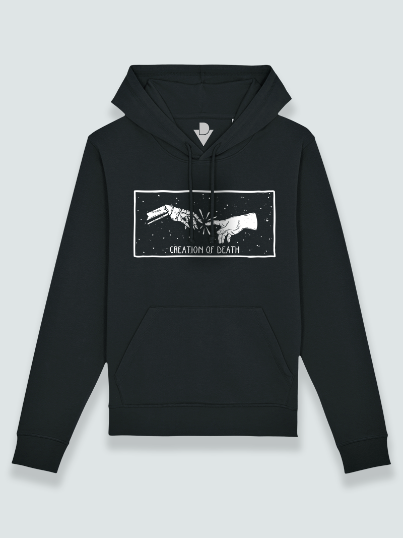 Canalé 1×1 en puños y bajo, puntada plana en todas las costuras, bolsillo canguro con sobrecostura.