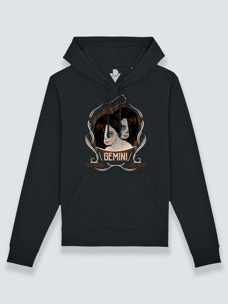 Bolsillo canguro, manga pegada, capucha forrada con punto de jersey, cordón redondo del mismo tono. Ojales de la capucha cosidos, Bies interior de espiga en el cuello, media luna interior en tejido principal.