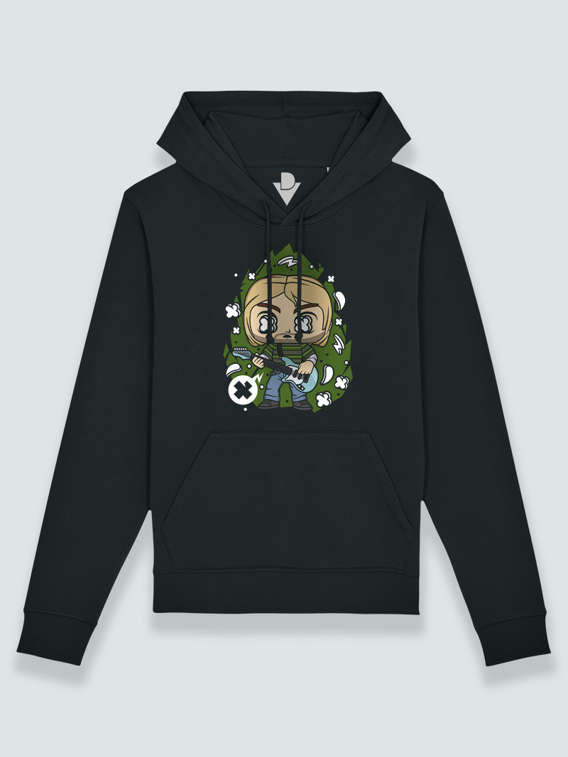 Canalé 1×1 en puños y bajo, puntada plana en todas las costuras, bolsillo canguro con sobrecostura.