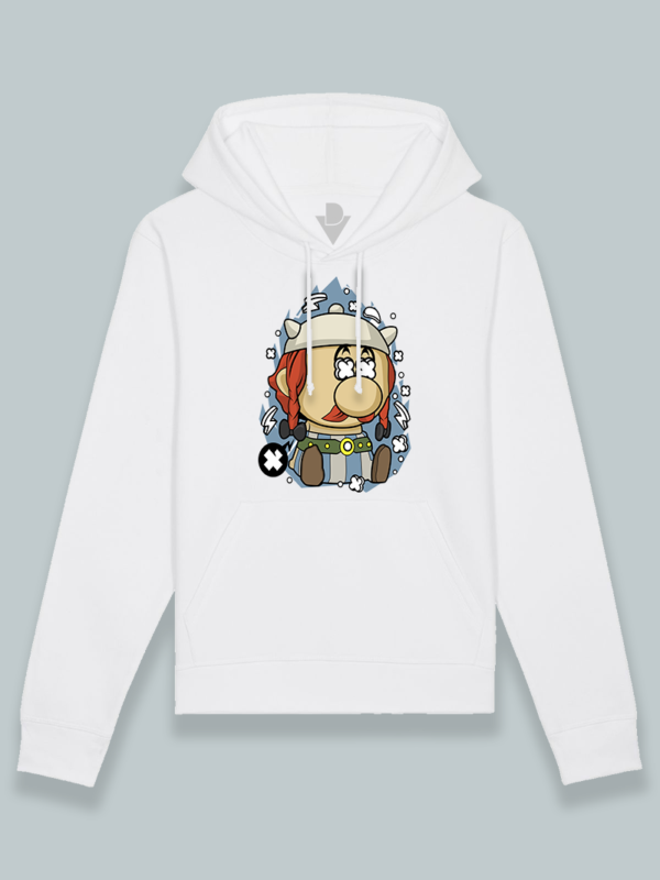 Bolsillo canguro, manga pegada, capucha forrada con punto de jersey, cordón redondo del mismo tono. Ojales de la capucha cosidos, Bies interior de espiga en el cuello, media luna interior en tejido principal.
