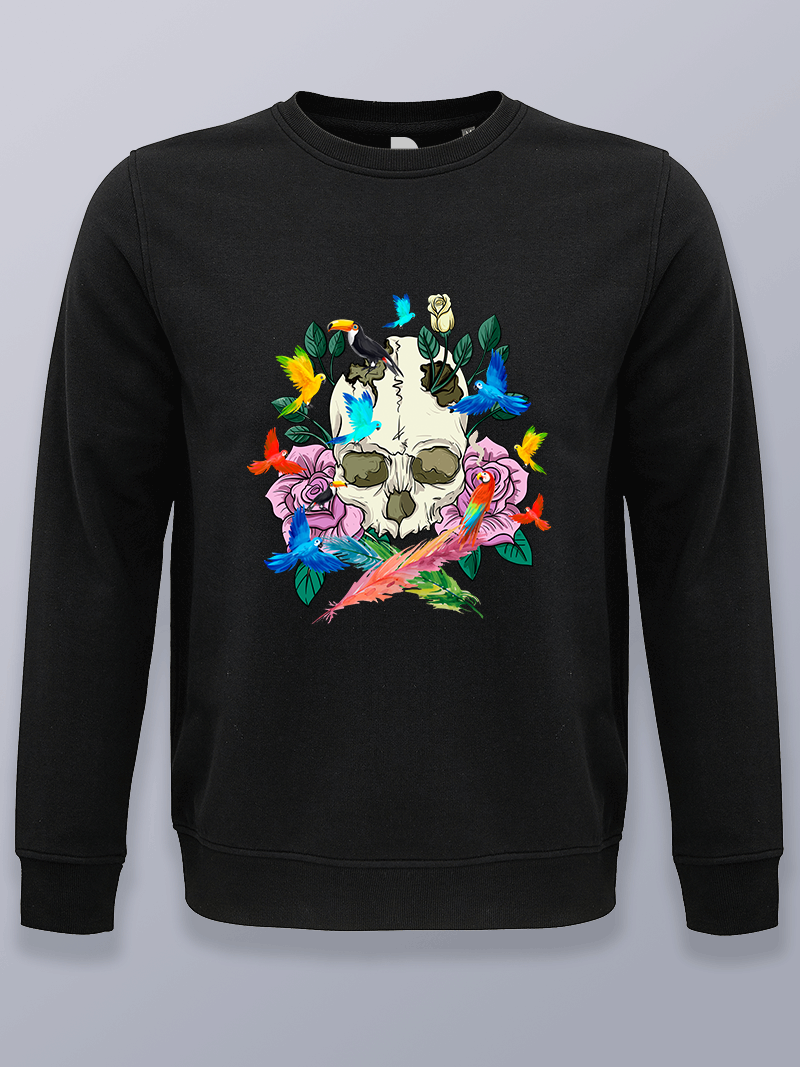 Sudadera unisex sin capucha con diseño de calaveras.